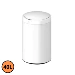 01 Lixeira Automática Redonda em Aço Inox 40 Litros com Sensor – Branca